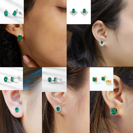 ALLNOEL 925 Sterling Silver Stud Earrings For Women 1ct Lab Grown Emerald Fine Jewelry Birthday Gift May Birthstone Wholesale